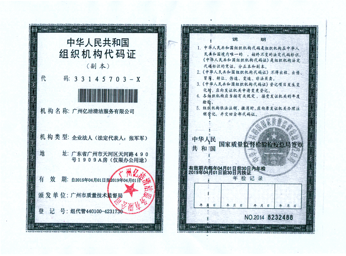 廣州億潔清潔服務(wù)有限公司是經(jīng)廣州市工商行政管理局批準(zhǔn)成立的(注冊(cè)資本:100萬(wàn)元人民幣)。具有獨(dú)立法人資質(zhì)。公司成立2015年,公司具備完善的管理體系和高素質(zhì)管理隊(duì)伍,擁有特種技術(shù)人員33名,保潔服務(wù)人員上萬(wàn)名,覆蓋廣州市,能及時(shí)調(diào)配并快速投入高效運(yùn)行。我們的每個(gè)員工都經(jīng)過(guò)公司的嚴(yán)格篩選,嚴(yán)格培訓(xùn),定期培訓(xùn)后持證上崗以保證服務(wù)品質(zhì),保障客戶的權(quán)利,利益,形象等不受損失。 廣州億潔清潔公司是一家設(shè)備齊全,技術(shù)強(qiáng)大的綜合型清潔服務(wù)公司,為客戶提供完善服務(wù)尊定了堅(jiān)定的基礎(chǔ)。 司于2010年全面推行了ISO9001質(zhì)量管理體系認(rèn)證和ISO14001國(guó)際環(huán)保體系認(rèn)證。先后獲得廣州高層建筑外墻清洗維修作業(yè)【安全資質(zhì)證書】、【廣州環(huán)衛(wèi)企業(yè)等級(jí)證書C級(jí)資質(zhì)】、廣州疾控中心頒發(fā)的【四害消殺服務(wù)資質(zhì)證】、【空氣治理A級(jí)資質(zhì)】、中國(guó)石材協(xié)會(huì)頒發(fā)的【石材資質(zhì)B級(jí)資質(zhì)】等。 廣州億潔清潔服務(wù)有限公司致力于打造專業(yè)、實(shí)惠、靠譜的保潔服務(wù)公司,把專業(yè)的事情交給專業(yè)的我們,您放心! 億潔清潔服務(wù)項(xiàng)目: 廣州保潔服務(wù):新建樓宇、別墅、酒店、醫(yī)院、辦公樓、賓館、企事業(yè)單位廠房竣工后開荒及裝修后精細(xì)保潔.工程保潔服務(wù)。 廣州物業(yè)托管:為廣州市各大企事業(yè)單位、賓館、政府機(jī)關(guān)、小區(qū)物業(yè)、酒店及廠房提供專業(yè)化保潔、園林、設(shè)施維護(hù)等管理服務(wù)。 廣州高空作業(yè):高空玻璃幕...[詳情]